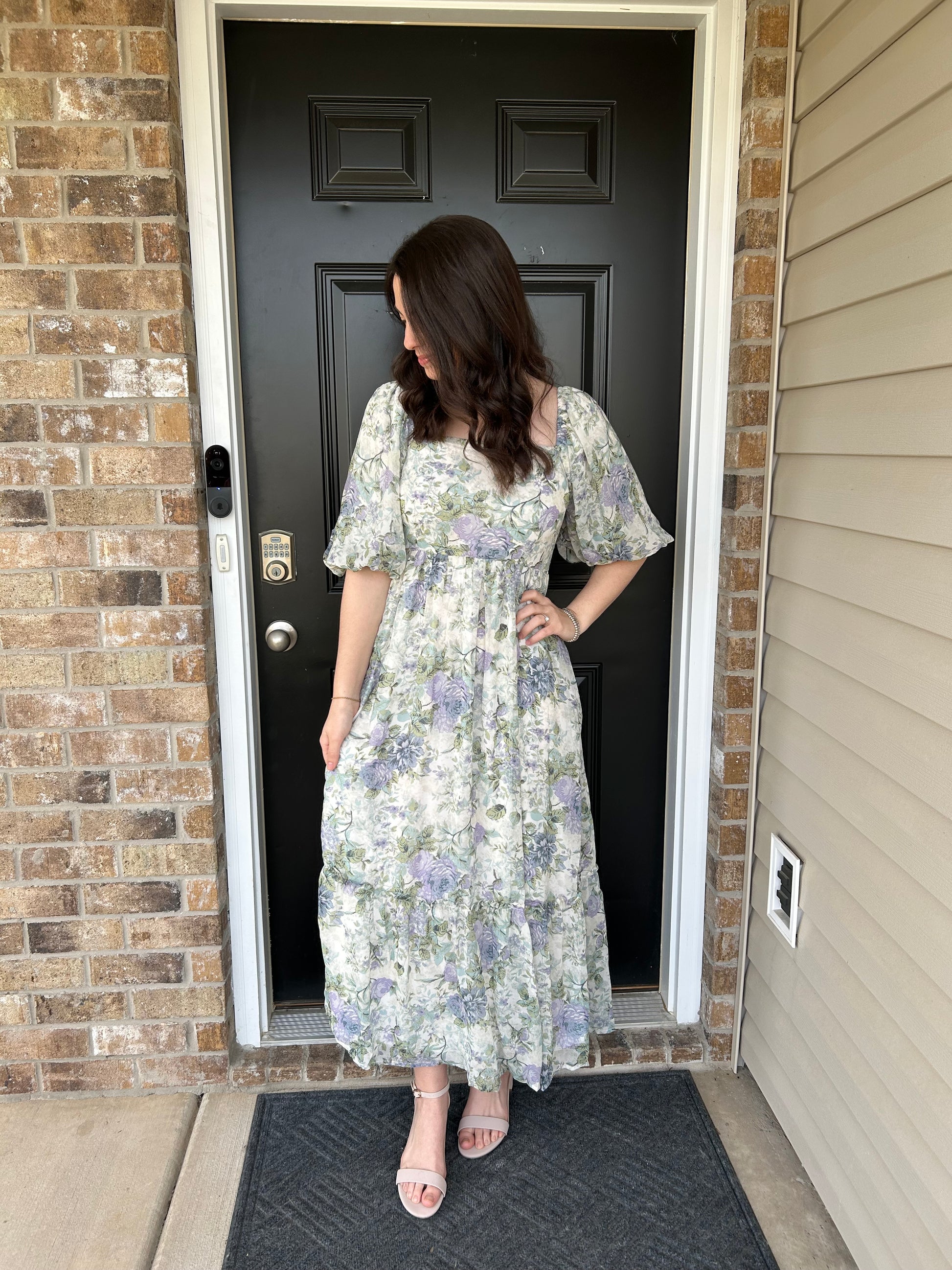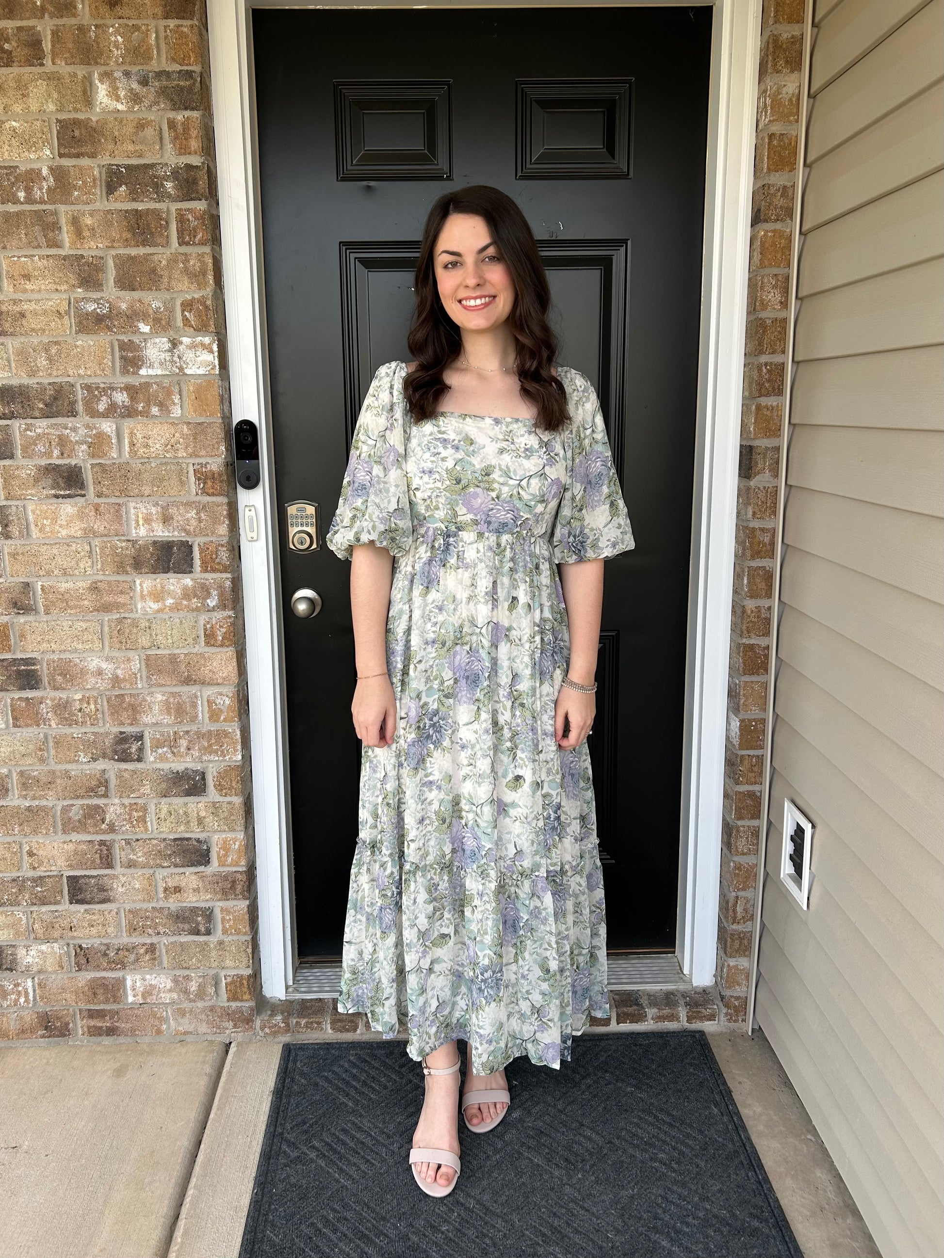 *Bust measurements are measured across the front and then doubled. Stretch is not accounted for in this figure. This dress does have a stretchy smocked band in the back as shown in pictures.